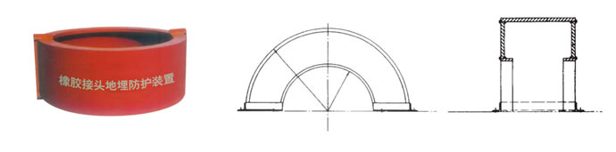 此地埋裝置為兩個半圓形中空組合而成.將橡膠頭和管道平焊法蘭全部裝入體內(nèi),兩端設(shè)有兩半圓形小平面帶鋼騎于兩惻法蘭外管壁.兩端立面支撐根據(jù)土層深度而定.足以承受外壓負重。該裝置配有一定數(shù)量對臺鎖緊螺栓, 以備安裝完畢后裝配。其安裝方法為:安裝橡膠接頭—>保護裝置內(nèi)涂防銹柒—>安裝下部1/2保護裝置放上上部1.2保護裝置—>旋緊對合鎖緊螺栓(注意安裝時要使橡膠接頭確保處于裝置中心位置)—>保護裝置外涂防銹柒回填原土.下部搗實,上部夯實—>三合土和墊層—>鋪設(shè)地面(好在適當(dāng)位置設(shè)有永久性標志.以備以后檢查更換時確定位置)。