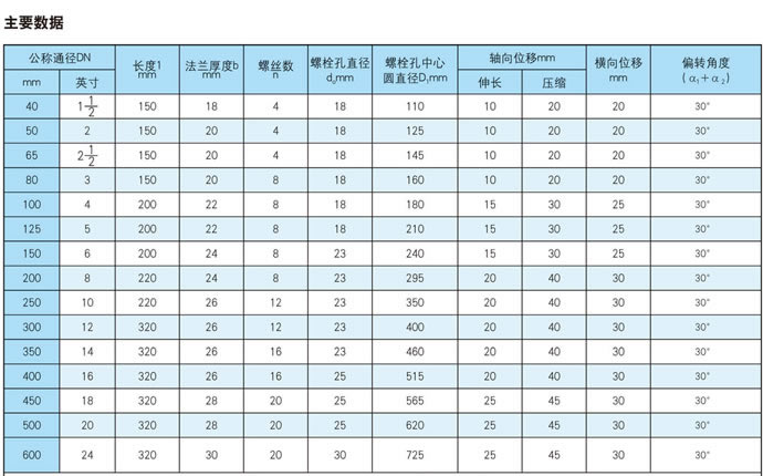 注 1.特殊要求可來函來圖定制.法蘭按《全國通用給排水標(biāo)準(zhǔn)圖集》,其它按HG/T2289-92檢驗(yàn)。 2.懸空給水使用DN200以上產(chǎn)品 管道有固定支撐或固定托架,否則產(chǎn)品應(yīng)安裝防拉脫裝置。 3.用戶使用橡膠接頭,對(duì)應(yīng)法蘭應(yīng)是閥門法蘭或符合GB/T9115.1(RF)法蘭。 4.DN40-600 PN=1.6MPa 2、DN40-200 PN 2.5MPa