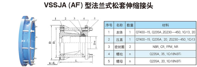 法蘭式松套伸縮接頭:松套伸縮節(jié)安裝在管道上后,擰緊螺母彈性密封圈,在螺母壓蓋的作用下相互斜度。緊壓在管子外圈起密封和連接作用。當(dāng)溫度變化時(shí)管子能在接頭中間自由的伸縮,當(dāng)?shù)鼗鲁�,管子能偏斜,并確保密封無(wú)滲漏,從而起到自動(dòng)補(bǔ)償之目的。