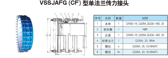 單法蘭傳力接頭:該產品適用于邊與法蘭連接 邊與管道焊接。安裝時調節(jié)產品兩端與管道或法蘭的安裝長度。安裝和焊接完畢后.對角依次均勻擰緊壓蓋螺栓.合其成為一個.并有定的位移量.方便安裝維修時.根據現場尺寸進行調整。在工作時可以把軸向推力傳遞至整個管道。